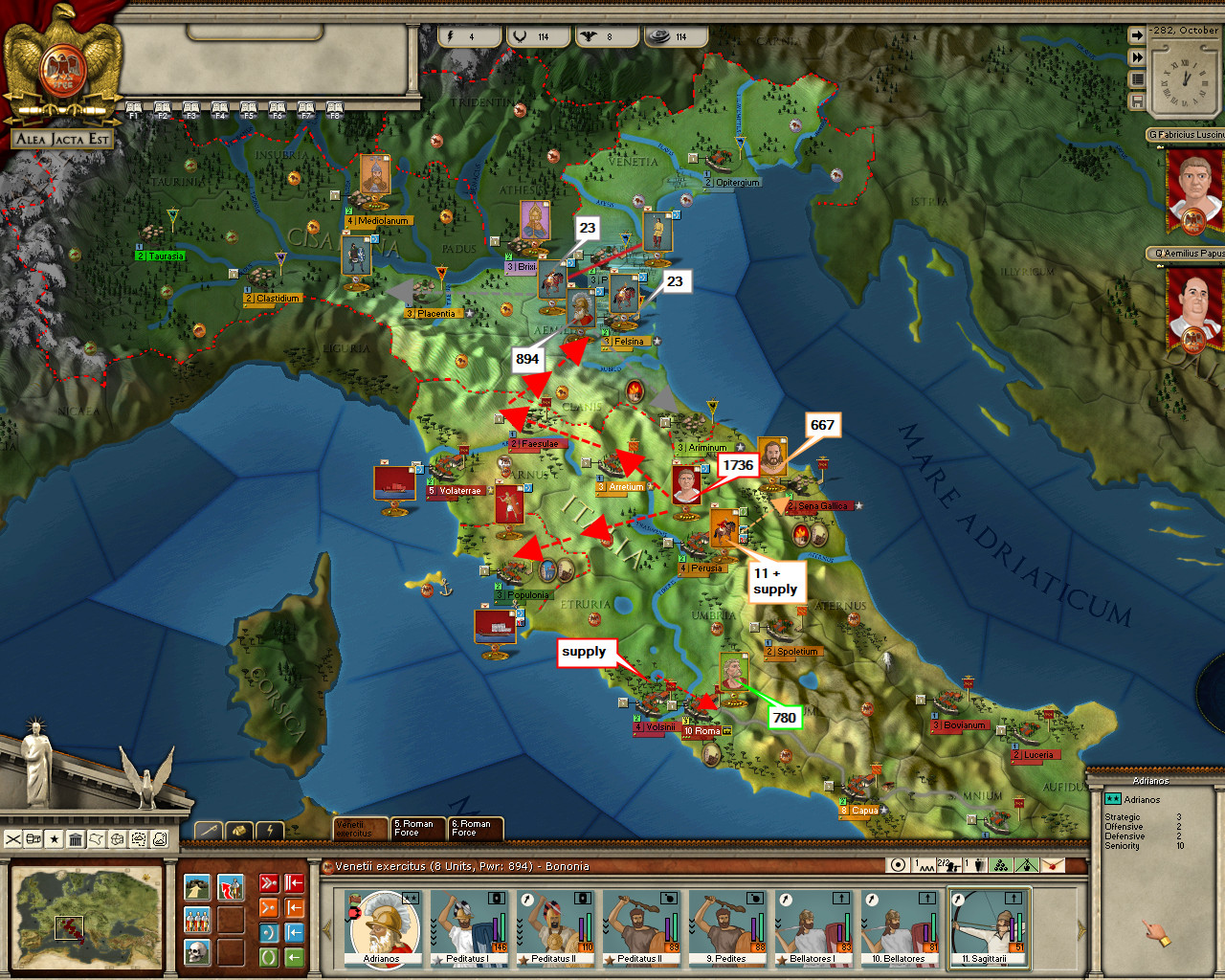 Papus will take a cavalry force around the south to reclaim some empty provinces, including Casinum.