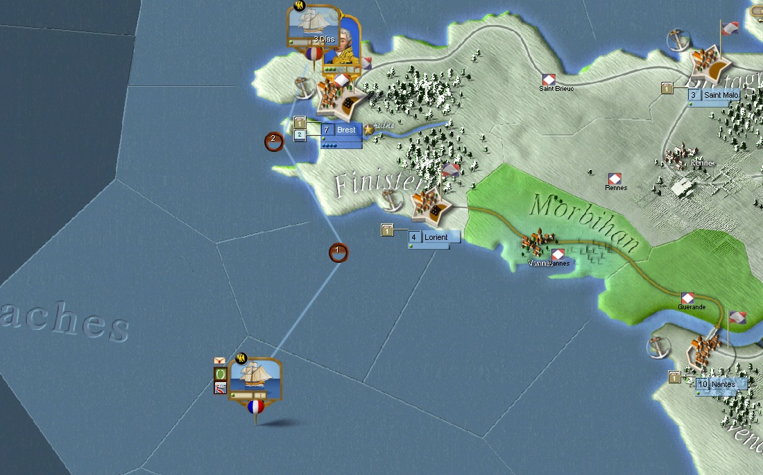 Y sobre lo de Villeneuve, ya sabemos que los juegos de AGEOD se intentan ajustar bastante a la realidad, y la realidad fue que al marino francés le vino muy grande el mando de la escuadra Combinada... Con Gravina al mando, otro gallo habría cantado, pero... Napoleón no estaba por la labor de otorgar el mando de las operaciones a un extranjero.