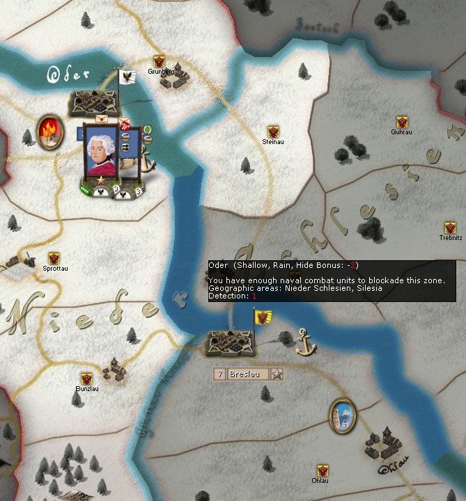 Here Breslau harbour is shown as blockaded "you have enough naval combat units to blockade this zone".