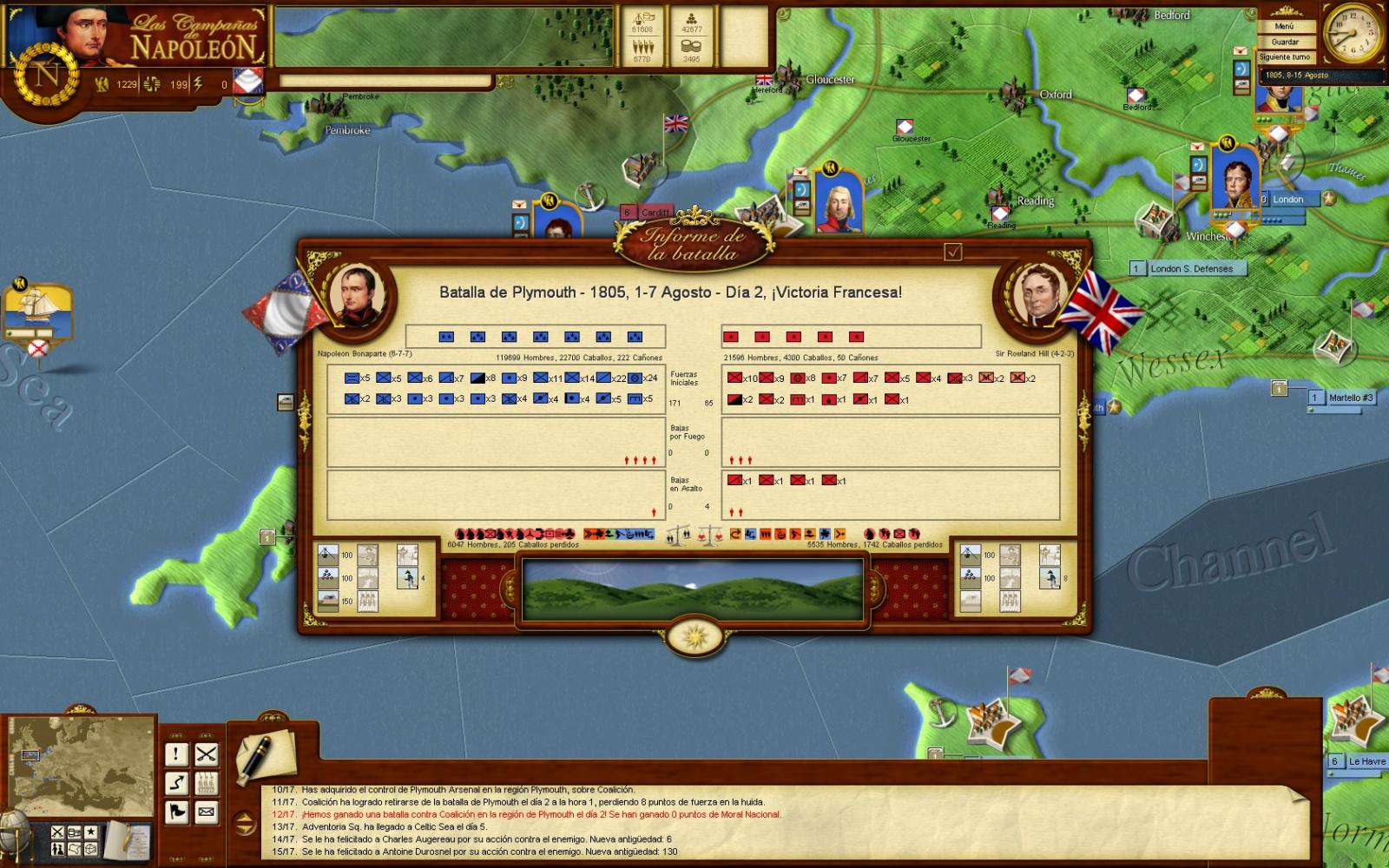 Las ciudades inglesas de Liverpool y Manchester han sido conquistadas por el ejército de S.M.I. tras un breve asedio. En Liverpool, los hombres del mariscal Bernadotte iniciaron el asalto en la amanecida del día 22 tras una fuerte preparación artillera que consiguió abrir una brecha en sus murallas. Los defensores actuaron bizarramente y causaron numerosas bajas a nuestras tropas, aunque finalmente hubieron de capitular ante la superioridad del 1er Cuerpo.