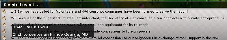 - The Great Siux Uprising event centers map on North Dakota, but it tells you to have regiments in Minnesota. Uhm well the map could center in North Dakota-Minnesota border if Minnesota is the yellow state between the green North Dakota and the pink Wisconsin in the map if you apply the "political states" filter. I think "Minnesota" name is missing in that filtered map ( at least i cant find the name "Minnesota" anywhere). So i am not sure if i need to have 3 regiments in the green North Dakota state or 3 regiments in the yellow "missing name" state. I cant find the names "West Virginia" and "New Mexico" in that filtered map ( and i know where are those :-P). The political states names have a small size font. Dunno if it is something related to the 1680x1050 screen resolution i am playing and those names can be readed better with smaller screen resolution.