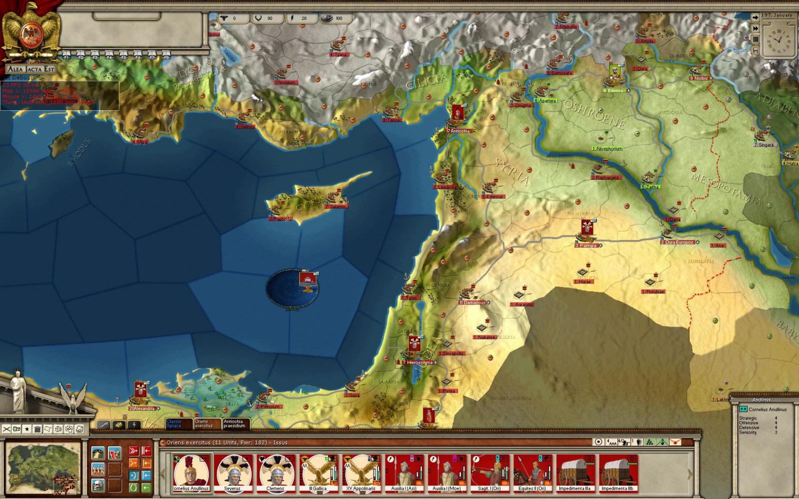 I am playing as Rome versus the AI in the Severus returns to Parthia scenario. In this scenario Severus has gone east to finish off his rivals in the Civil War, Parthia takes it's chance to attack.