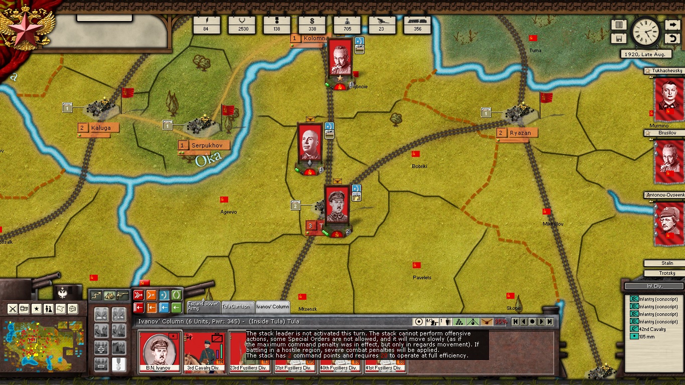 Thnx, but I still don't understand how does it work. For examample i have spearated my Smirnov's corp to check it.[ATTACH]25825[/ATTACH] Alone he has 2 command points and the command cos of all his units is 20. Yet I can combine them into a corp[ATTACH]25826[/ATTACH]. I have many of one star generals that have 2 cp and some can combine and others can't.I don't know what to do with them. I can still use them to reduce command penalties for a stack but i would like to form new divisions or corps with them but i can't.