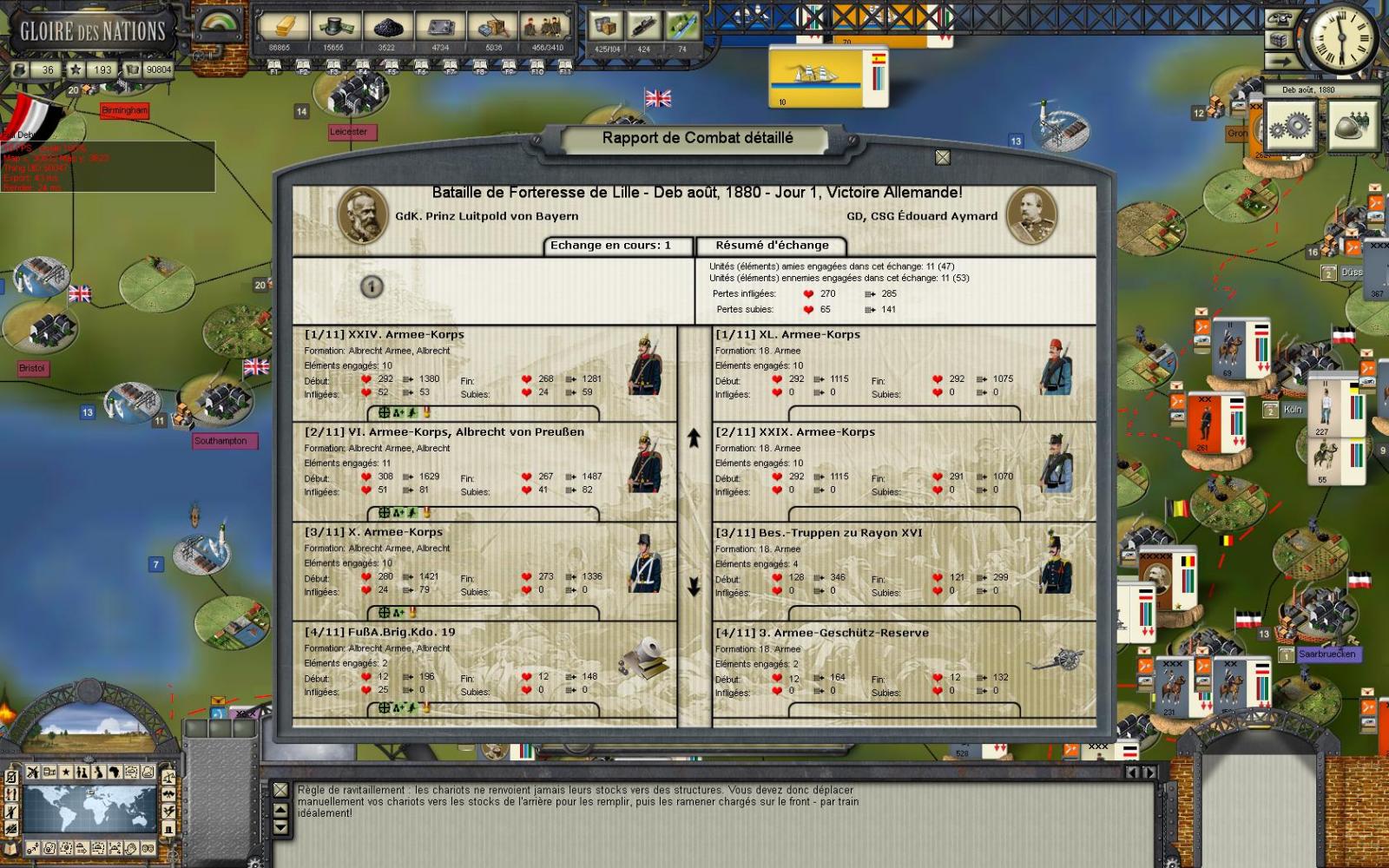 the western part - France- is under attack from me - there is nothing I could annex, only motive is to keep relation with Austria - with correlative advantages of a weakening of France and some action (for a player, it is a welcome change from exports/import countings) - start of war worked fine - Germans enjoy an excellent generalship and can send morer concentrated actives troops than the French do