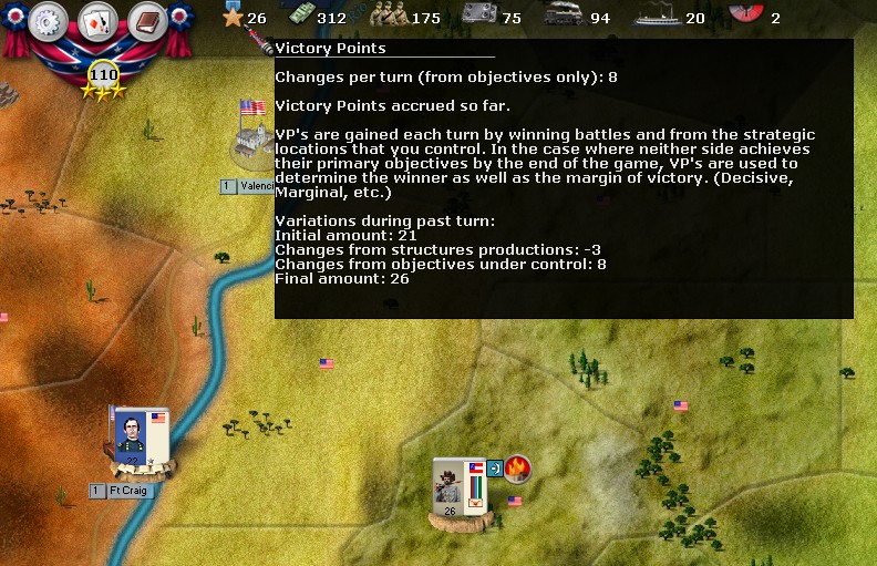 Thank you! I went to update the Wiki but found that someone has inserted values of +5/-3. I just want to confirm that those numbers are wrong before I change them. They imply that one could net 2 VPs with every enemy stockade captured and burnt. Instead what happens is that the side losing the stockade loses 1 VP, and the winning side gains none (or possibly one from eliminating an autogarrison and making a follow-up roll)? Destroying the newly captured stockade costs one VP also, so if a player captures a stockade and then burns it, each player has lost one VP leaving the relative positions the same (ignoring the autogarrison possibility)?