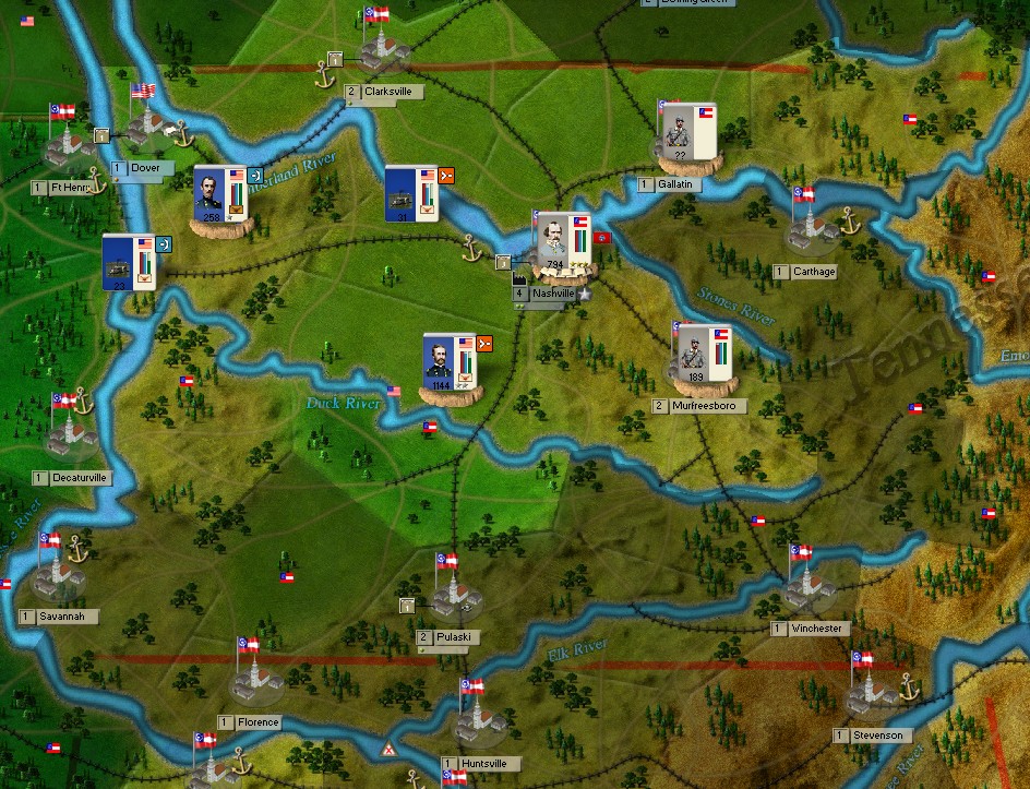 Lyon will need reinforcements if his Tennessee Campaign is to succeed. I'll scout for the possibility of opening a second front on Island No10. Invading KY is always an option as well.