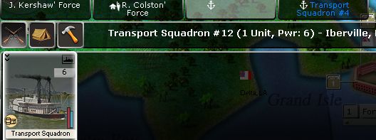 I have an active general (even several generals) in NO, 4 x 6 lbs gun, and a riverine transport unit (4 elements).
