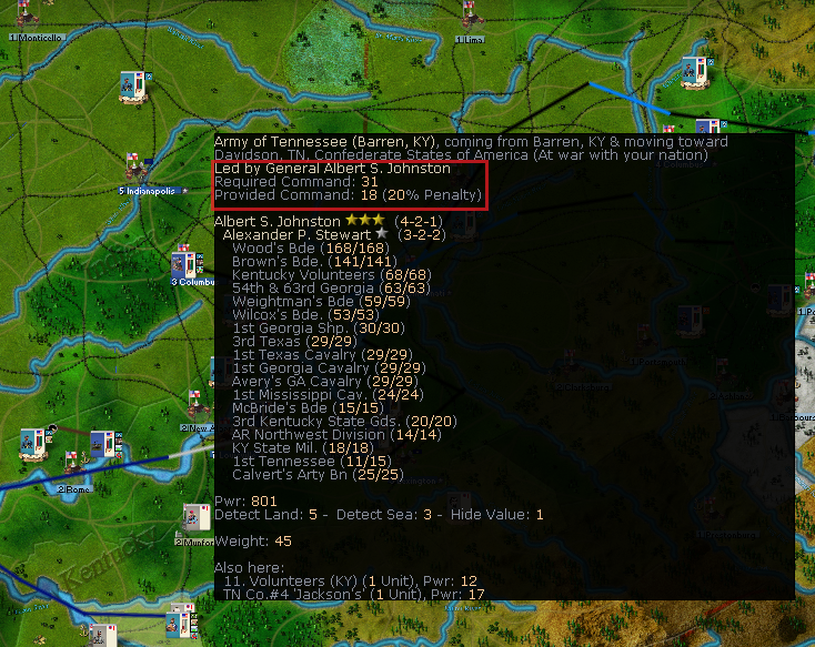 Mr. Albert Johnston is pushing a CSA stack around that requires 31 command points, but he and his cohorts are only providing 18 command points. He's suffering a 20% penalty; but, with a 13 command point deficit, he should suffer the max 35% command point penalty, should he not? Am I missing something?