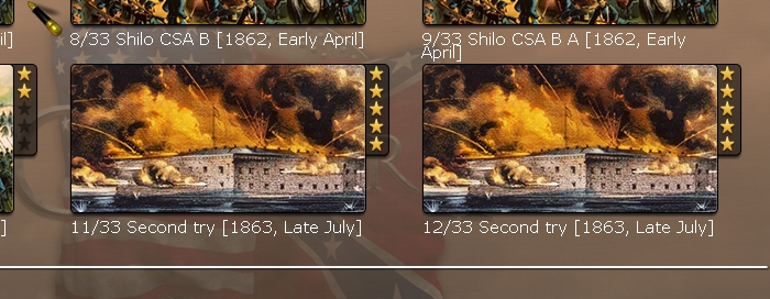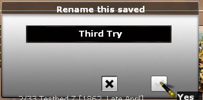 I would like to see the Load screen with smaller scenario icons, or even a list view. It can be difficult to find the save you are looking for under the current presentation if you have a lot of saves. I also make a habit of renaming every game at start because the auto-named ones are too similar to each other and hard to tell apart on the Load screen.