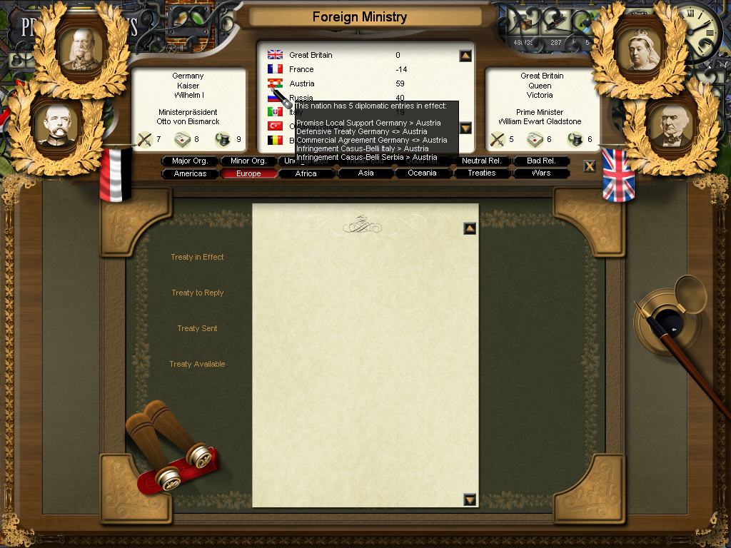 Next turn I send the austrians a new request for a deffensive treaty, I hope this time they accept (I have more than 60 relation with them, although I don't know if it matters when the A.I decides if accept or not, I'd appreciate a feedback here).