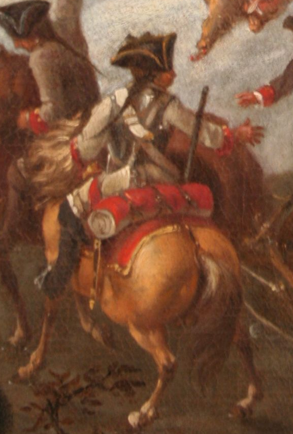 Perhaps someone knows? I was wondering about the equipment of cuirassier and carabinier-companies (the latter being the "specialist company" of a cuirassier regiment). I'm not sure whether oridnary cuirassiers were also equipped with a carbine. Osprey-booklets (not a big fan of them for this topic) say yes. Also most contemporary, mid 18th cent. depictions (see images; plus consult the royal collection "David Morier"; plus see image linked above with archduke Leopold) show men wearing a cuirass with a carbine, as you can tell from the two belts (the broader one for the carbine, the smaller one for the ammo-bag).