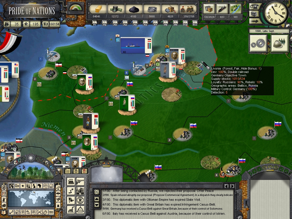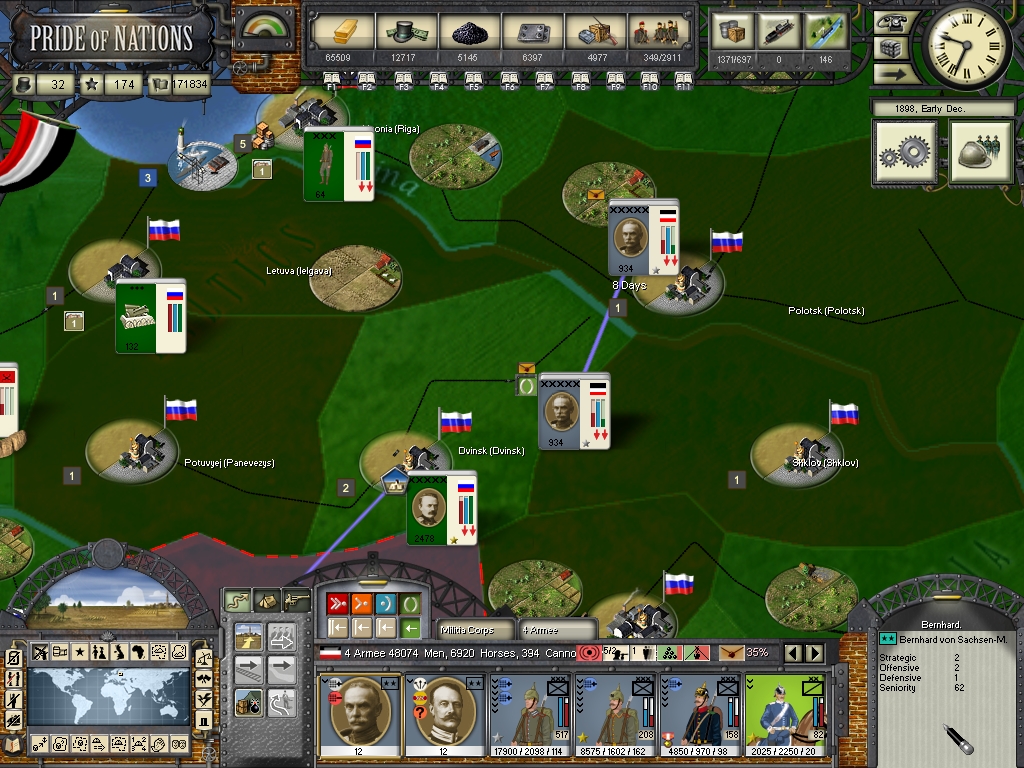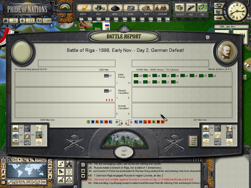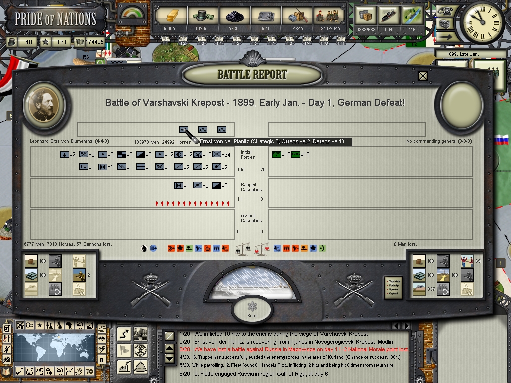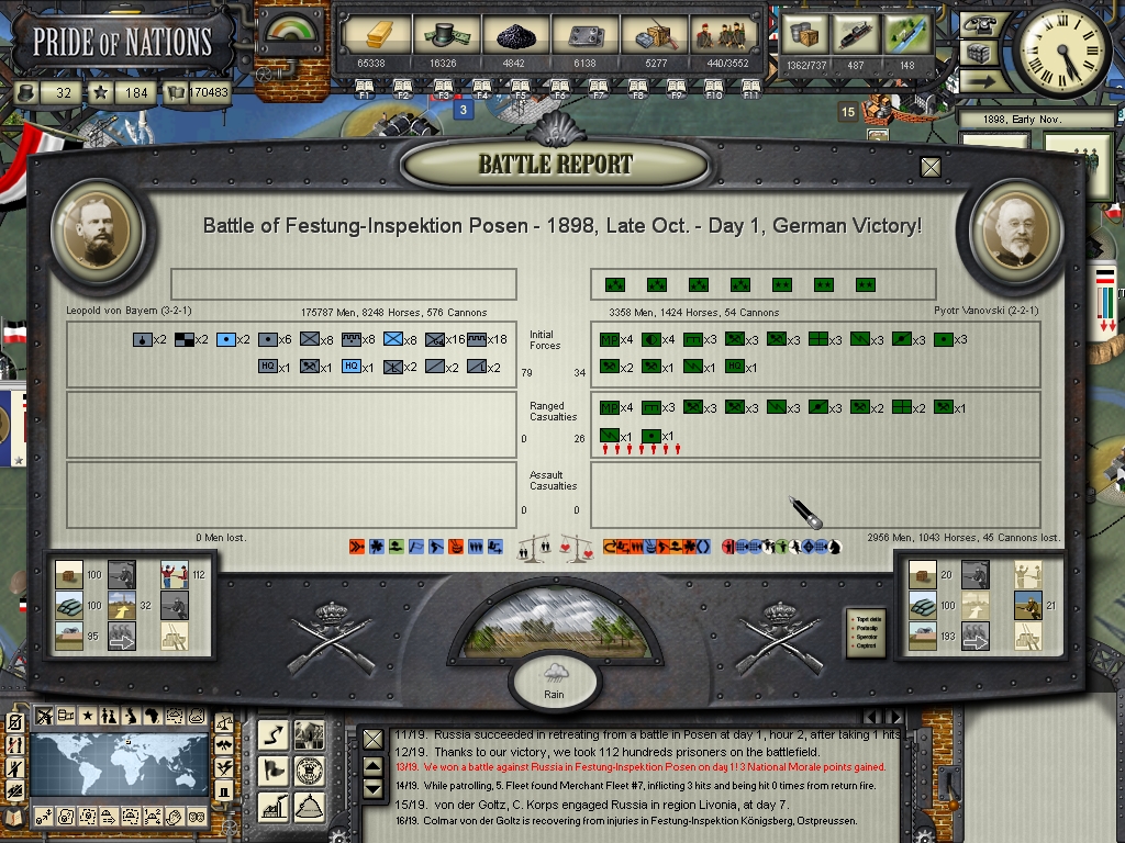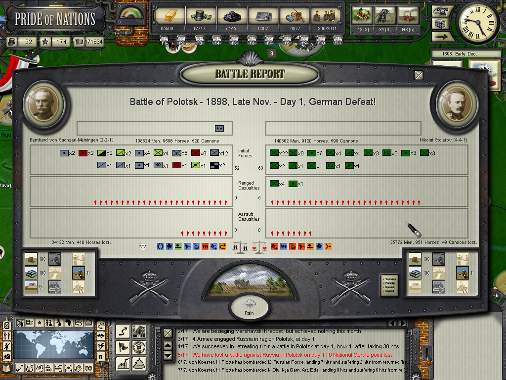 as to the war on land, mostly going in your favour but you don't want too many victories like Mohilev or you'll be badly weakened by attrition