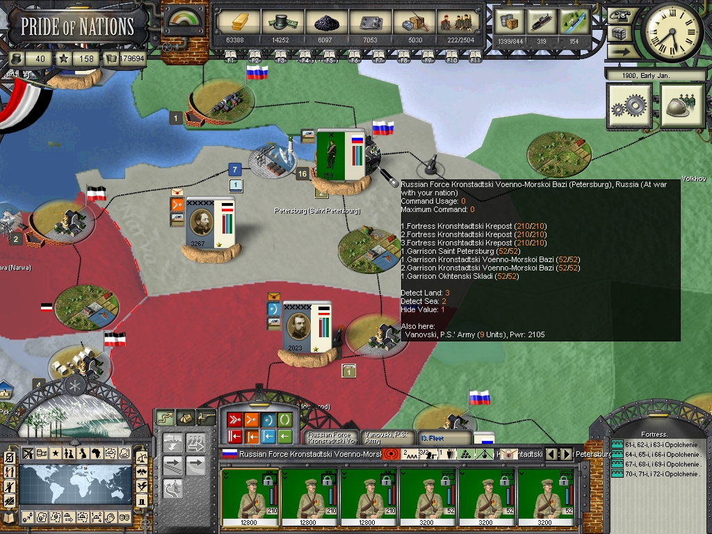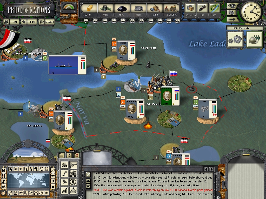 Bronsart von Schllendorf captured Helsinki from the russians, what greatly boosted the support for Germany there. We have breached the fortifications of Saint Petersburg, our soldiers eagerly awaits the order for the assault! The war finally seems to be coming to an end.