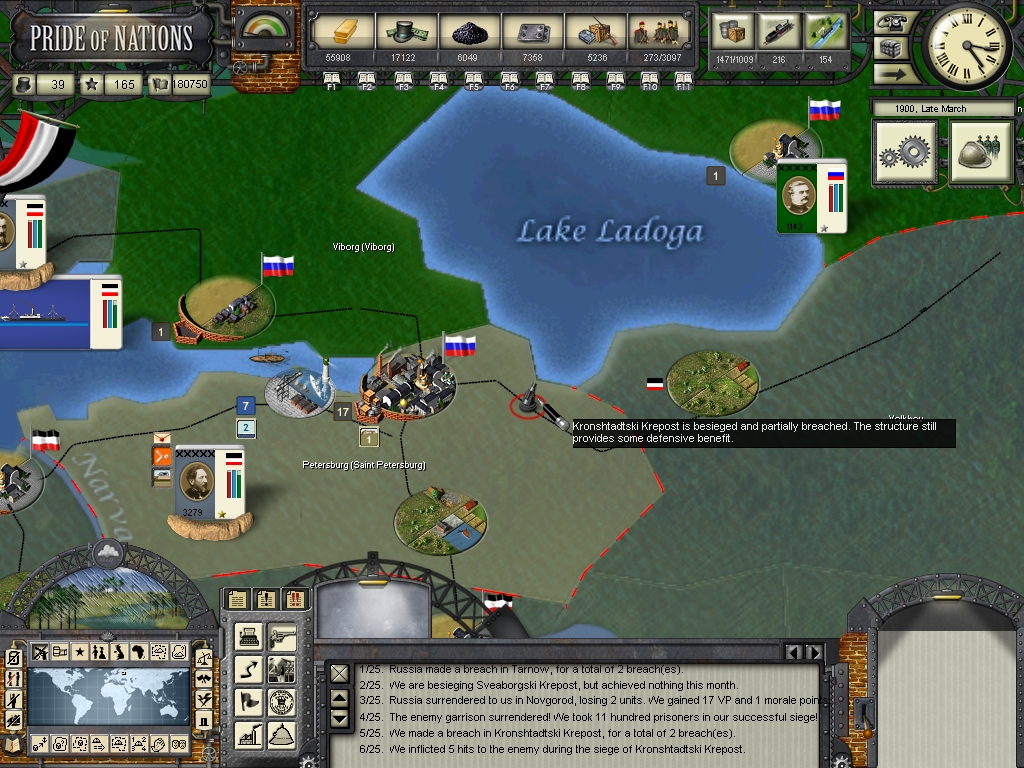 Bronsart von Schllendorf captured Helsinki from the russians, what greatly boosted the support for Germany there. We have breached the fortifications of Saint Petersburg, our soldiers eagerly awaits the order for the assault! The war finally seems to be coming to an end.