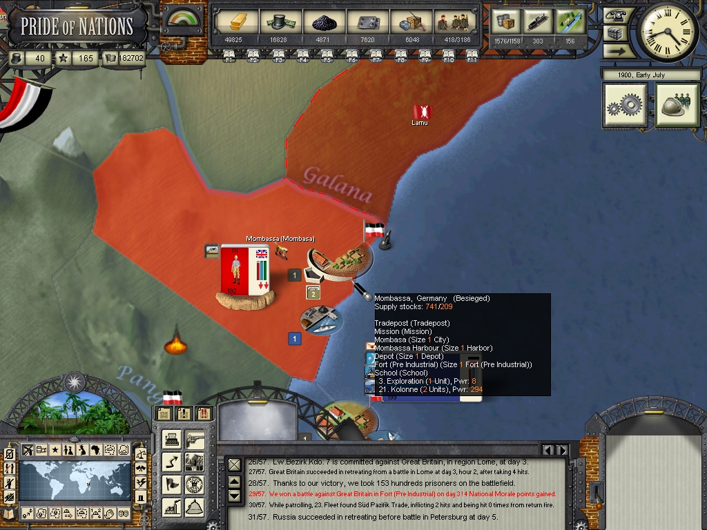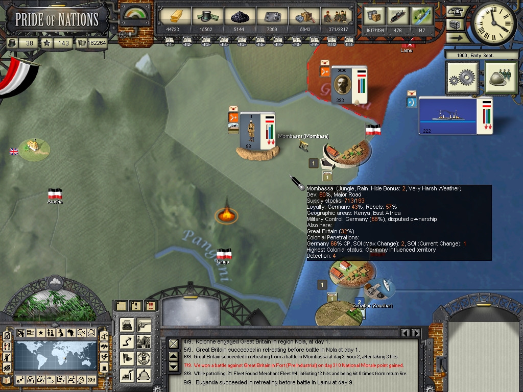 Our counter-attack in Mombassa managed to drive the british forces back! The african troops fought bravely against the british, they're really loyal to the german crown!