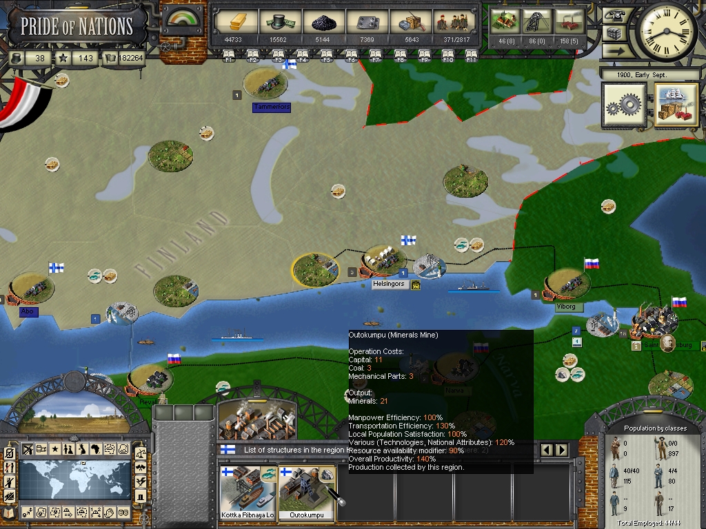 Second the Minerals mine I wanted to create at Kuppio was created in Samya, where there isn't any Minerals, ah as I made the event twice because some of the territories I had to research the name in the Area files, another Mineral Mine ended up in Helsingors (Helsinki), where also there isn't minerals, but still the mine is producing well.