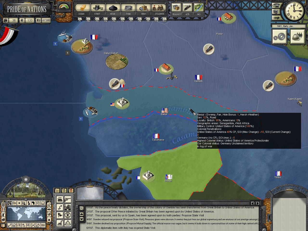 The americans have won their war with Great Britain as I expected, but this peace treaty signed was really weird, the transfer of Gambia!? I play with historical claims (and all the historical options you can imagine lol...) so this peace really pissed me off, that makes no sense, why would the americans want Gambia?