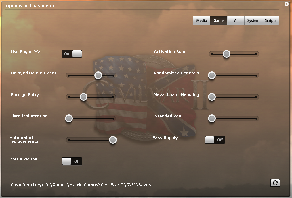 Game settings