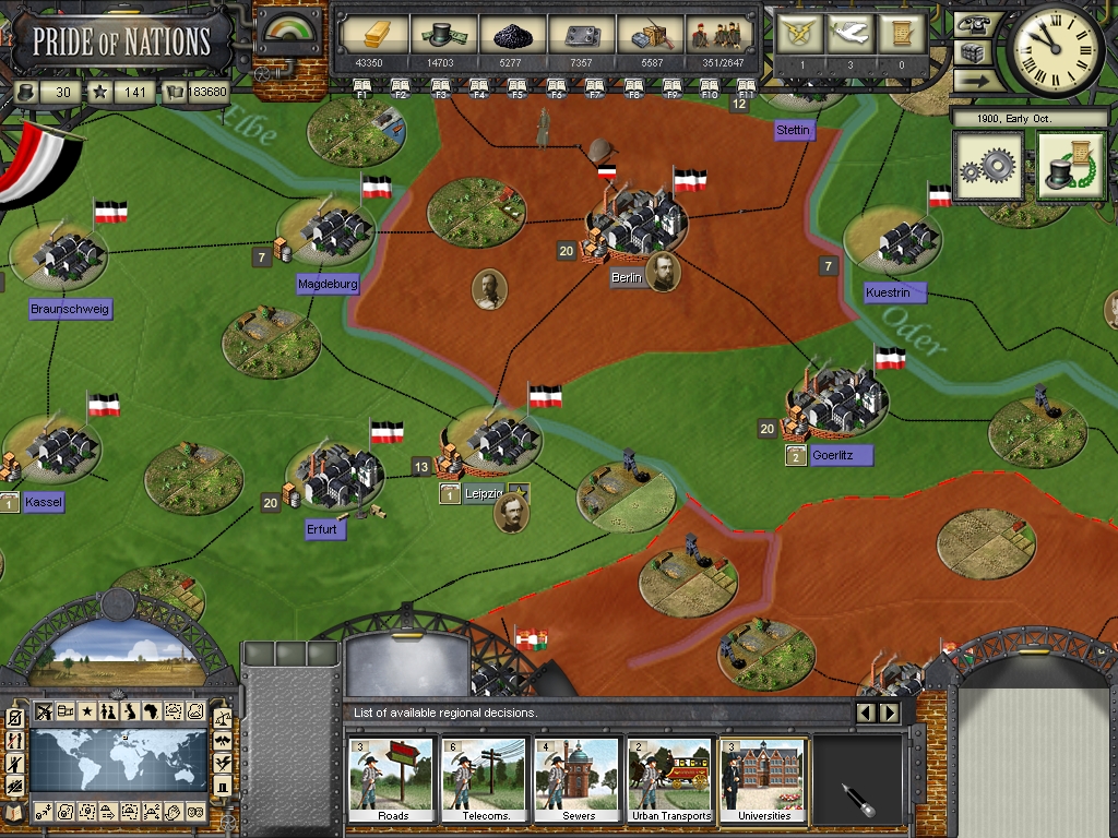 People may wonder how I manage to get the german contentment so high, well, it's true that war weariness isn't really hard in the game (at least when we're winning the war, as I'm playing Germany and I haven't lost a single war yet, I can't say if this is different when we're not going well in the war). And another thing is that I'm always doing reforms in the education system, investing in Universities, sewers, improving telecomunications system and so on, as my wars are now far from the heart of our country I'm going to show here some of these things.