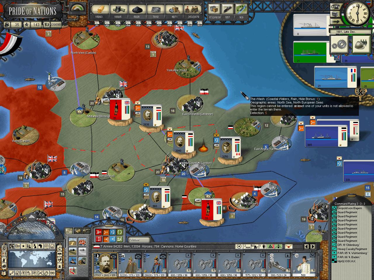 in my german game, looked for British fleet (which was once in great numbers in southern china fleet fighting pirates I guess - had to open britain to find it) - then lost track - except convoy duties british fleet never showed up anywhere (may have created a blockade around China - my silk no longer arrived in hamburg during war) - no Hiome fleet and I landed unopposed in British isles (nothing serious, just had to take Nigeria cities which remained British in spite of me getting a protectorate there and 100% control - blocks building anything -and took New guinea where, by event, british beat me to the clock - were already very much german colonized)