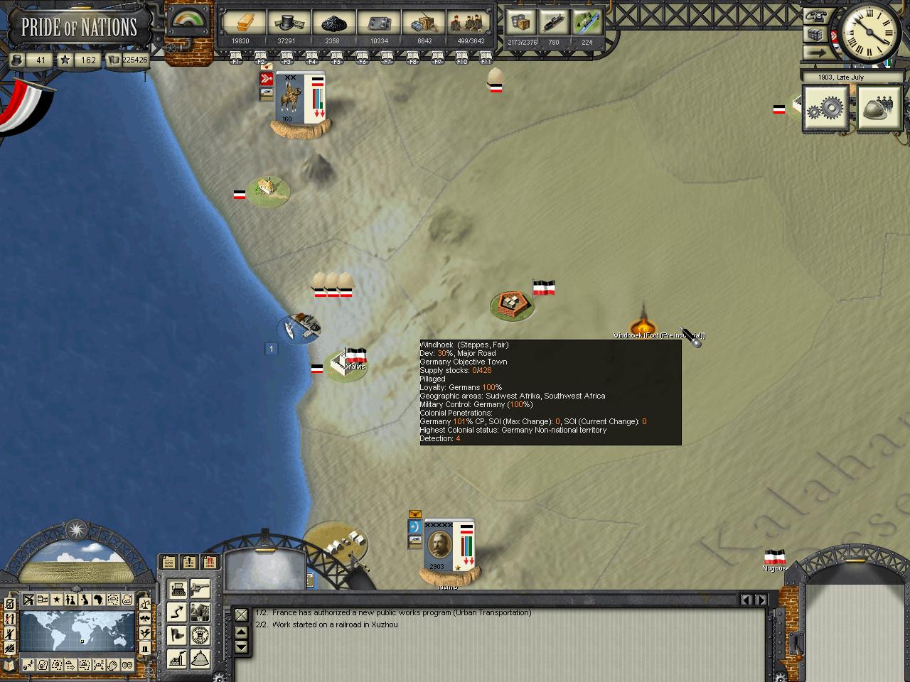 for Windhoek at 101%, it happened to me, can come from an already high colonial investment, then an event comes and increase penetration - at 101% a colony becomes non national territory. could invasion of a colonial area, which became partly non national territory, provoke a chain bug ? ....