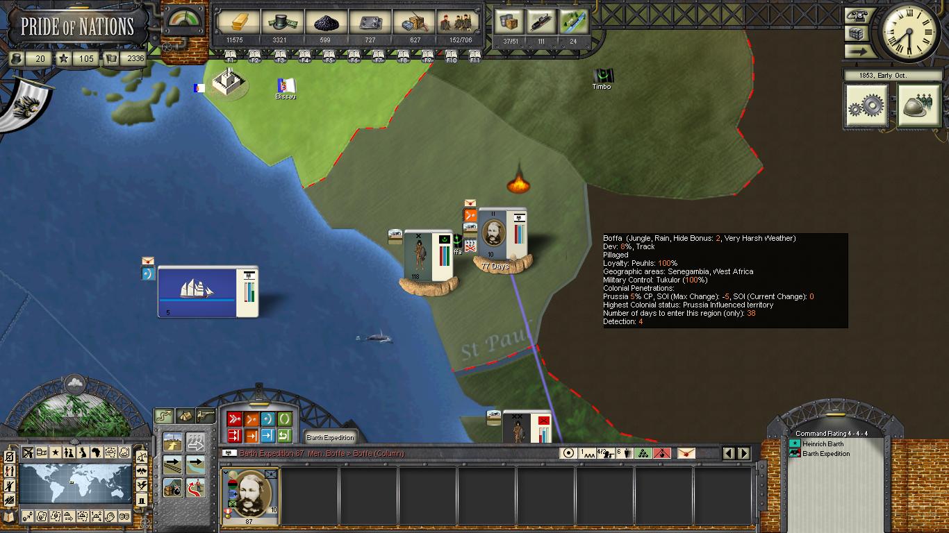 Playing as Prussia, I received by event an exploring unit on Boffa, a jungle region in Africa. After several turns, the unit has run out of supplies, so it is starting lose its streng, ppl are dying. How can I bring supplies to it? In the adjacent sea region there's a naval unit which has transport capacity, but I think she can't bring supplies, only unit, is it right? Do I need bring a carriage or is there a way to bring them by navy?