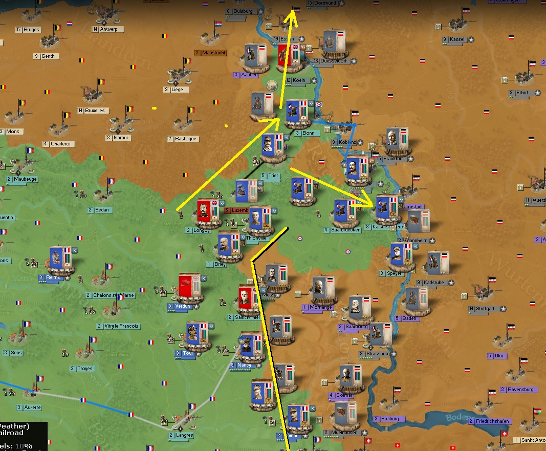 Capybara wrote:Well I think it must in part be due do the fact that with France, going through Belgium or through Luxembourg is a perfect way to counter Moltke plan: German troops are at the start locked in Alsace-Lorraine and rely on the fortification system (they have fewer troops than France). By flanking them through Belgium or Luxembourg, the german are basically screwed if played right.