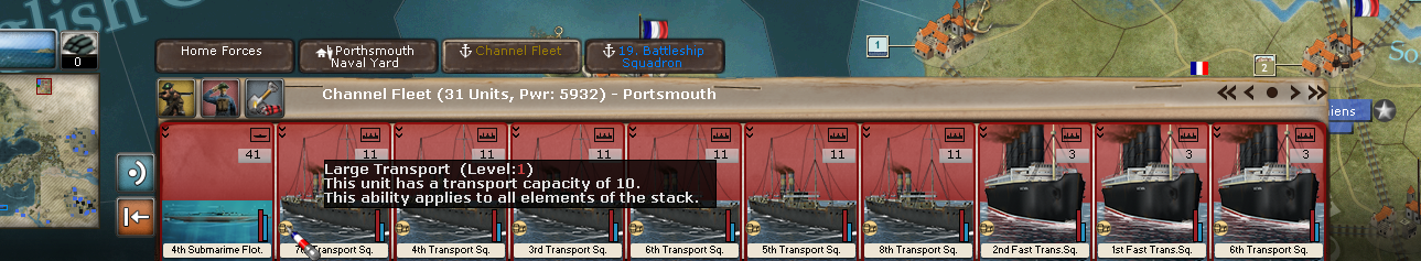 Kim White wrote:OK, I get the idea that I need to have the troops in a port and if there are ships there I can move them. BUT!!! I want to move troops from England to France and I cannot find any ships to put them on. I've checked the strategic atlas and the only transports I can find are in the Indies somewhere.