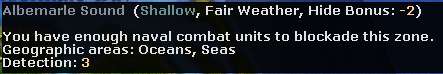 FelixZ wrote:Usually sea regions display a tool tip advising how many naval elements are required to blockade. Chowan's tooltip does not have blockading prose - Albermarle does. Is there a programing error?
