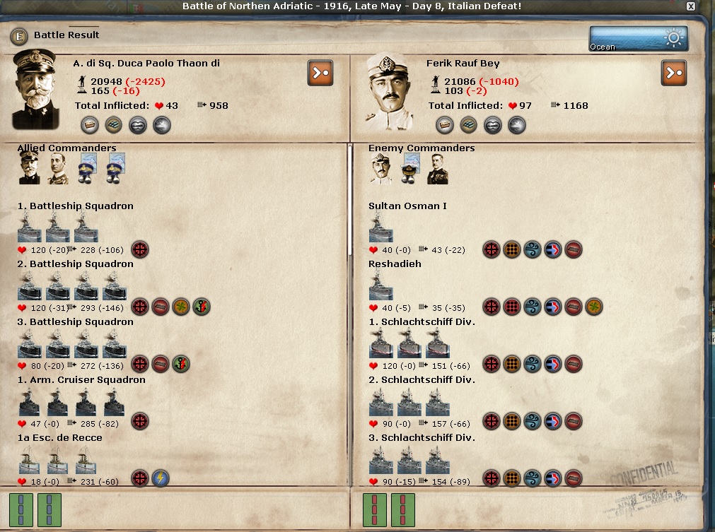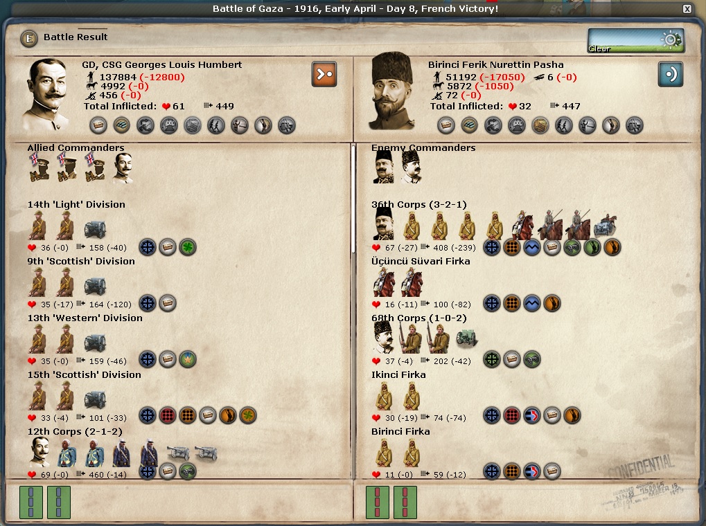Assault on Koeln - major victory. I finally received some NM for a land battle. I am sure it is because I completely eliminated all these elements. I received 2 NM for this won. Good job, Monsieur Foch!!