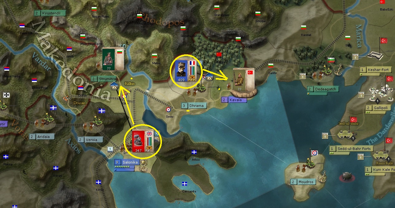 In this turn, my other British corps will finally land in the Salonika front.