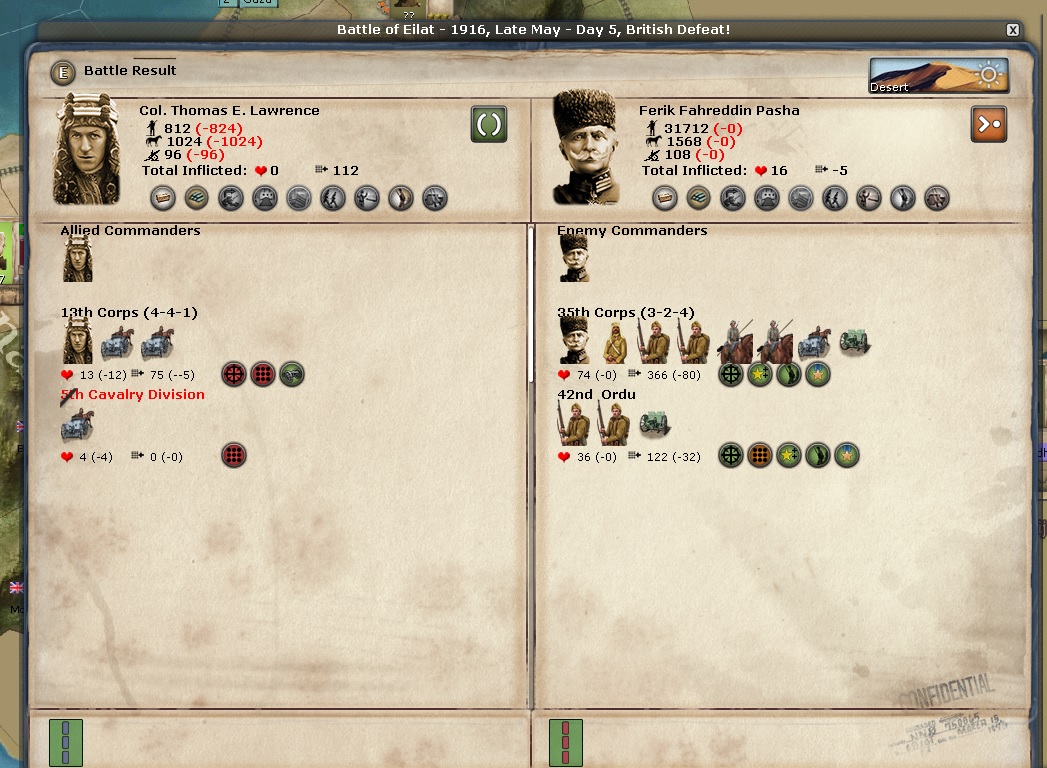 In Egypt, we have taken Gaza from the Turks. I have been trying to avoid battle with TE Lawrence, but even with him on evade, he was still in 2 battles and was almost wiped out. I have to get him somewhere safe.