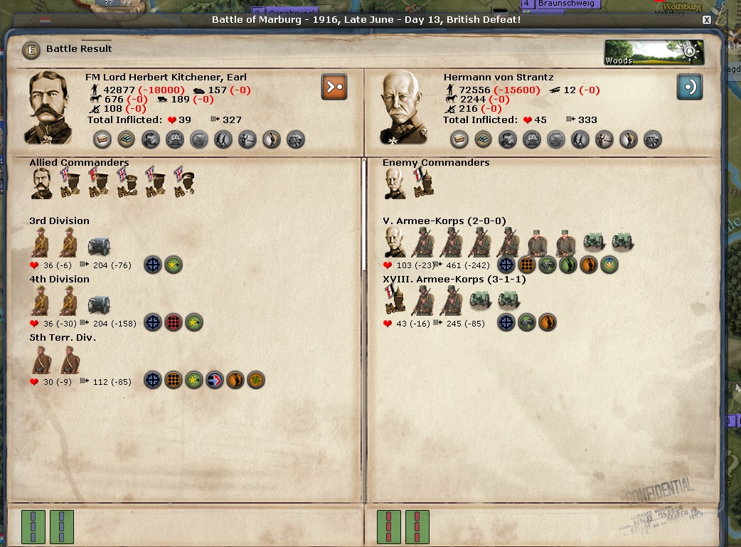 Also, Lord is moving to attack Hermann Von Strantz in Marburg. Two formations are being used in this attack. Time to avenge that earlier defeat Lord!!