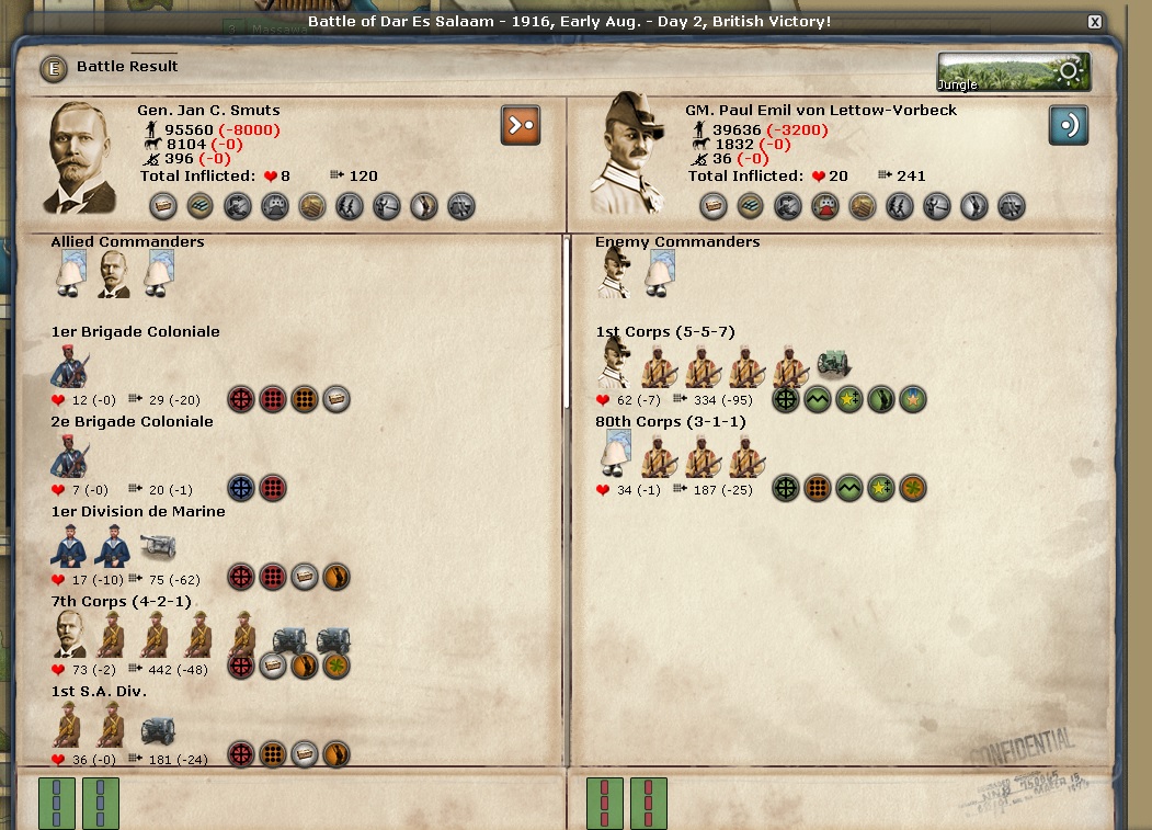 East Africa. JC Smuts loses and he retreats. I think I'll wait for awhile before I try this one again.