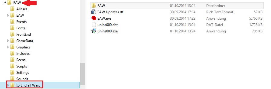 When I installed version 1.0, the installation gave me a 'EAW' folder, instead of a 'To End All Wars' folder.