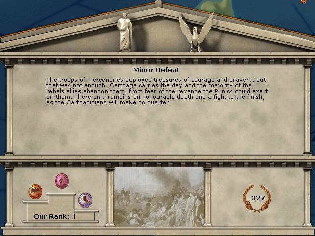 All quiet on the southern front. Utica is still besieged. Sardinia is firmly in my hands. Well, almost: locals rise up against me.