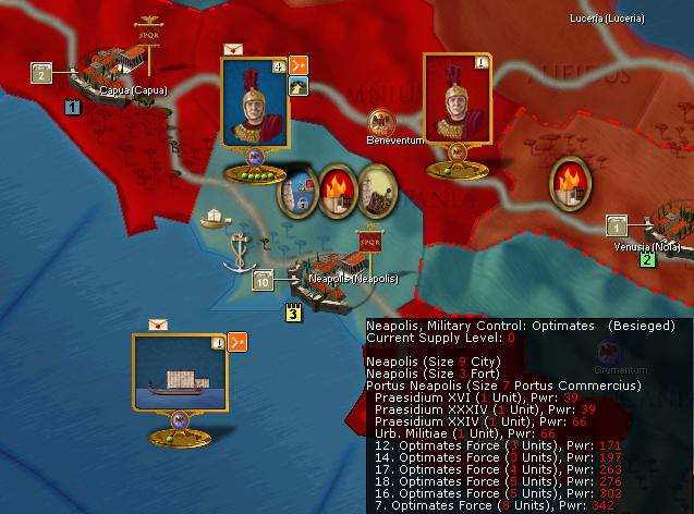 In Italia, a major Optimates force is besiges in Neapolis.