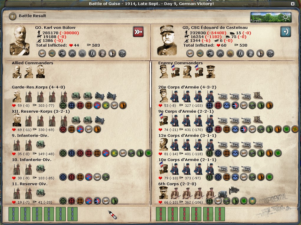 After bloody victory at Sedan, the most obvious route would be to advance further towards Reims. But I lost faith I can achieve a breakthrough there. I presume Lindi will concentrate his armies there, so I 'll be happy with consolidating my lines along Ardenne forests. So, I'll attack nortwards toward Guise with my 2nd Army led by Bülow instead.