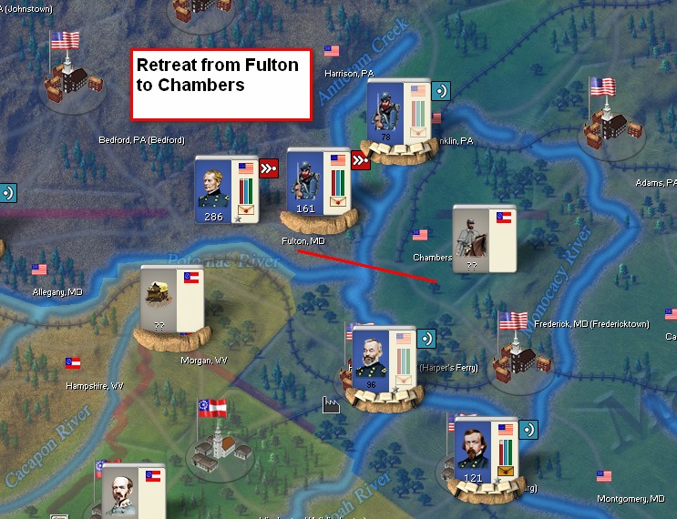 Here the most logical retreat route was to Morgan, WW which contained friendly units, and friendly MC.