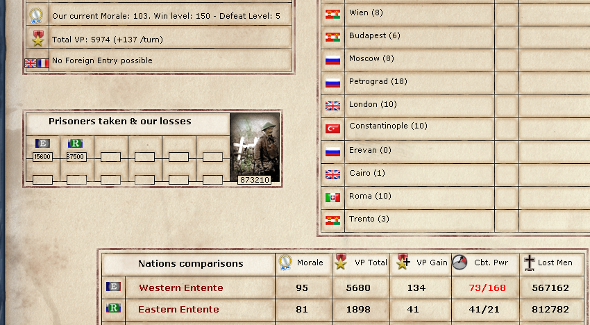 ajarnlance wrote:When Ludendorff moved from the eastern to the western front he realised that Germany had to take a more defensive stance and he had incredibly powerful defences built along the western front.. sometimes in the rear of the original front line. This could be reflected in the game by making Ludendorff an OHL with very defensive ratings + abilities. Then, if Russia exits the war, Ludendorff's ratings could be switched over to the offensive. I know these two generals were a very close team but I still think it is a mistake to combine them... even more to make their appearance dependent on the EE player invading Prussia. In my pbem I'm not likely to see either Hindenburg or Ludendorff at all... just feels wrong.