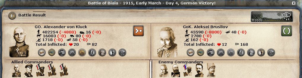 Von Kluck moves on to Biela to engage the second Russian army under Brusilov... it is important that I knock these Russian armies out to free up some reinforcements to send north where the Russians are massing around Wilna.