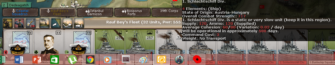 ajarnlance wrote:If I change them from passive to another posture will this free them up? or are they now useless for 540 days? The annoying thing is that the hits don't show up when at sea... so you think everything is OK.. then you get to port and its goodbye fleet.. ageod seems to love springing nasty surprises on players.. definitely needs fixing. Just like the ammo trains which always show full green on the unit card even when totally depleted...