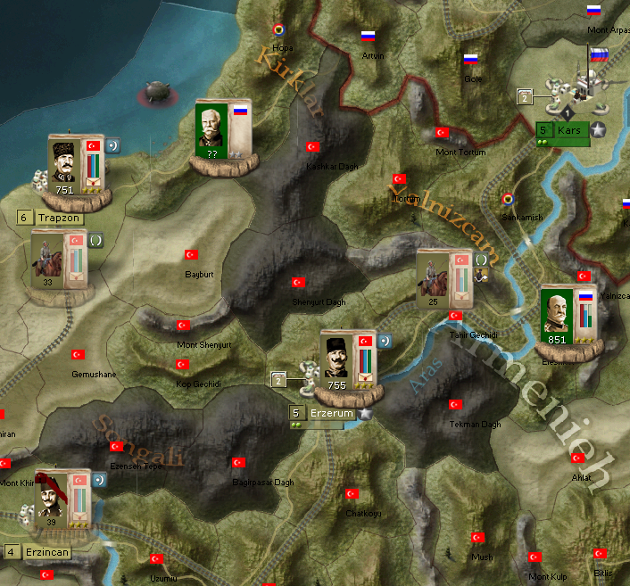 Further north I send out cavalry patrols to check on the strength of the Russian armies descending from Armenia. We seem to be equally matched.. and my goal is to hold here for now.