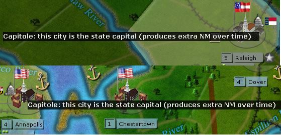 When you cursor over the state capital icon in a region, you get this message: