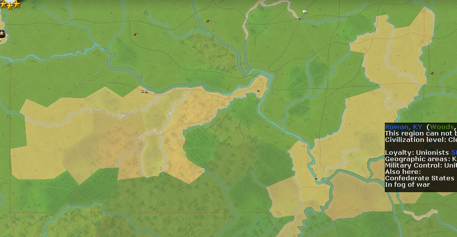 There goes about 50,000 Missourians not able to join the fight. Never Kentucky and Coastal Defense. You cannot defend everywhere so it's best to choose your fights where you can win ... hard to decide, I love so too much Real Estate as the CSA but the Union has her pick where she wants to fight.