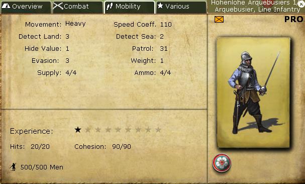 As you can see, Dutch Protestant Musketeers and Armored pikemen are pretty much the same as their Catholic counterparts (once you take into account varying experience levels, of course), with one exception: Protestant patrol values are, on average, lower. They are still high when compared to other Ageod games, and I suspect they will go down in future patches. When that happens, do not forget to have some cavalry handy.