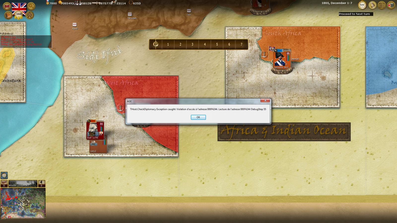 I'm on turn 62 playing as the British using the Dec 21 patch. a few times I've been kicked back to the main menu during turn processing, usually restoring to a previous turn has solved this and allowed me to continue. on my current turn (turn 62) I was kicked back to the menu again, I've tried restoring previous save but it still wont let me continue.....