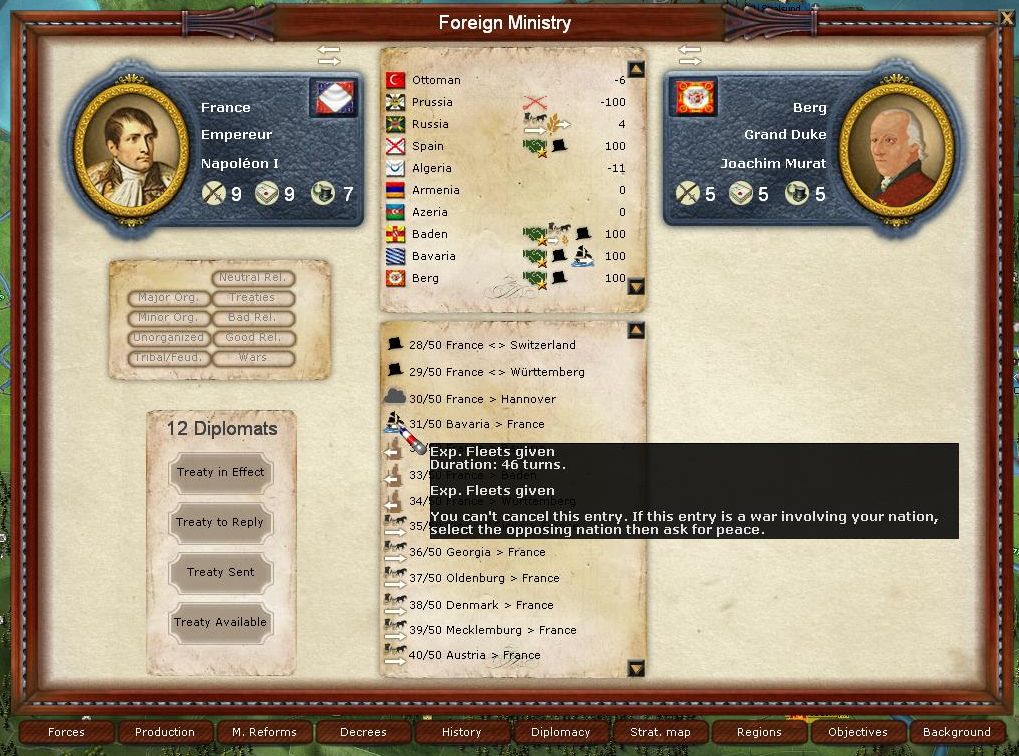 Montbrun wrote:After thinking about this, I think that the supply mechanisms will be an issue. How would the French keep an army supplied while overrunning Saxony and Prussia? After Prussia surrenders, and there's a Treaty of Tilsit, how do you supply the Army in Prussia and Saxony after the regions return to original ownership?
