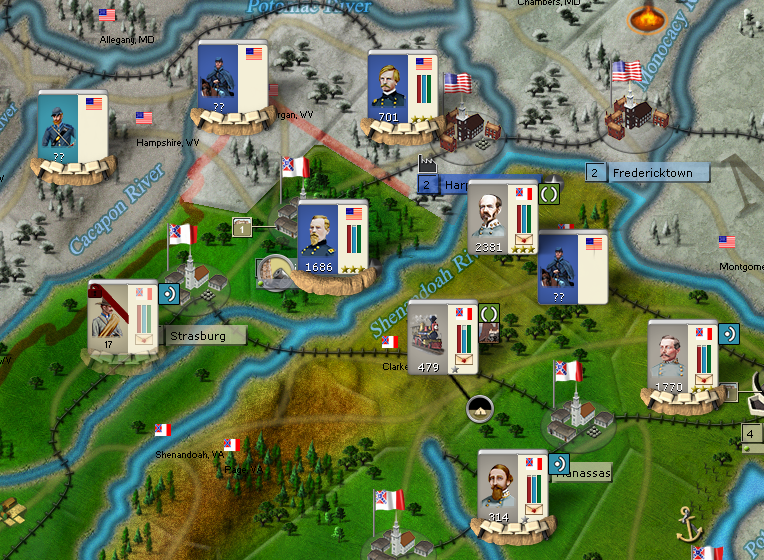 Headquarter attempts to trap enemy in Manassas. The army of Beauregard has been split in two. The general must stay with the 1st part in front of the city, making Union believe that the forces stay there too hold the city. HQ believe that Union will think that what is left moved away to West Virginia to Johnston’s army, but in fact, hiding in the city. HQ hopes that Union will attack and get decimate on this strong position. On the same time, if the plan doesn’t work, Jackson and the troops recruited in Richmond are traveling to Manassas witch should give CSA a large army, able to force Alexandria defenses.