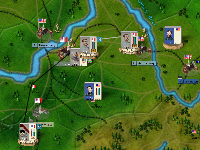 Situation on Western Theater: Louisville has been conquered. Bridgehead from Union in Harrodsburg must be destroyed before the cold season.